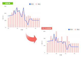 ご家族に万が一のことがあった場合、問題なく生活が送れるのか。健康に過ごした場合と比較してシミュレーションが可能です。万が一の時も、健康に過ごした時も、無理のない生活を送れるライフプランを一緒に考えましょう。